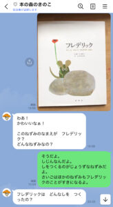 私自身では見つけられないような本を、きのこさんが紹介してくれて、子どもが喜んでいたこと、病院の待ち時間に、きのこさんからメッセージや選書の動画が来て、嬉しそうな子どもと、 一緒にお返事を送ったことが印象に残っています。